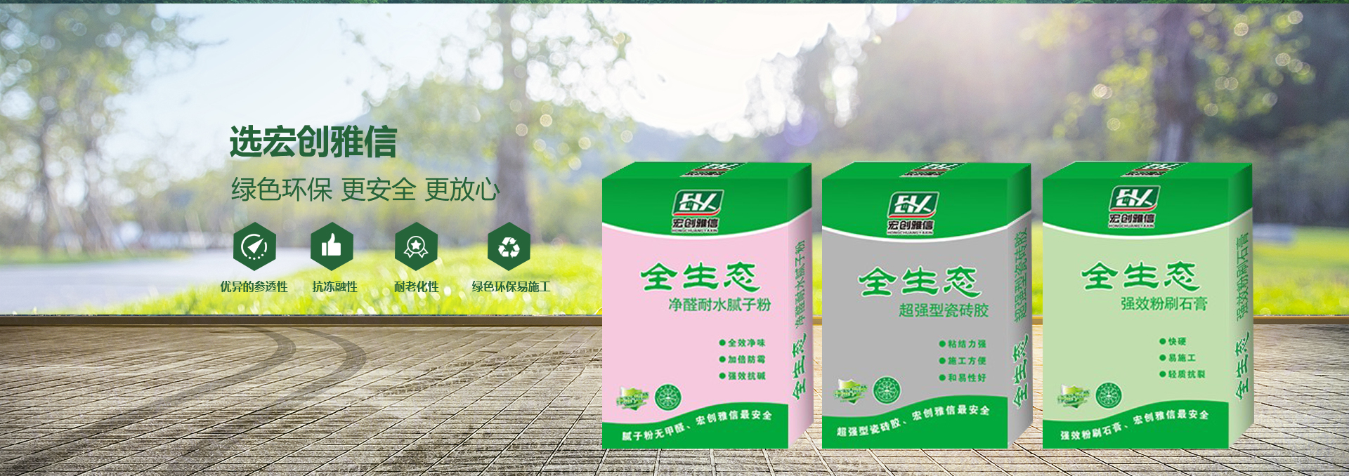 宏創(chuàng)雅信裝飾材料北京有限公司(威海分公司)是一家生產(chǎn),研發(fā),運(yùn)輸,施工綜合性股份制企業(yè),主要產(chǎn)品:快粘粉、嵌縫石膏、內(nèi)外墻耐水膩?zhàn)臃邸?nèi)墻超細(xì)膩?zhàn)臃?、高?qiáng)石膏、粉刷石膏、瓷磚粘接劑、填縫劑、內(nèi)外墻防水涂料、108膠、聚合物粘接砂漿、聚合物抗裂抹面砂漿、灰鈣、重質(zhì)碳酸鈣、砌筑砂漿、膠粉聚苯顆粒、浮雕骨料、玻化微珠保溫砂漿、FTC相變節(jié)能保溫砂漿、SF增水保溫砂漿、等產(chǎn)品。